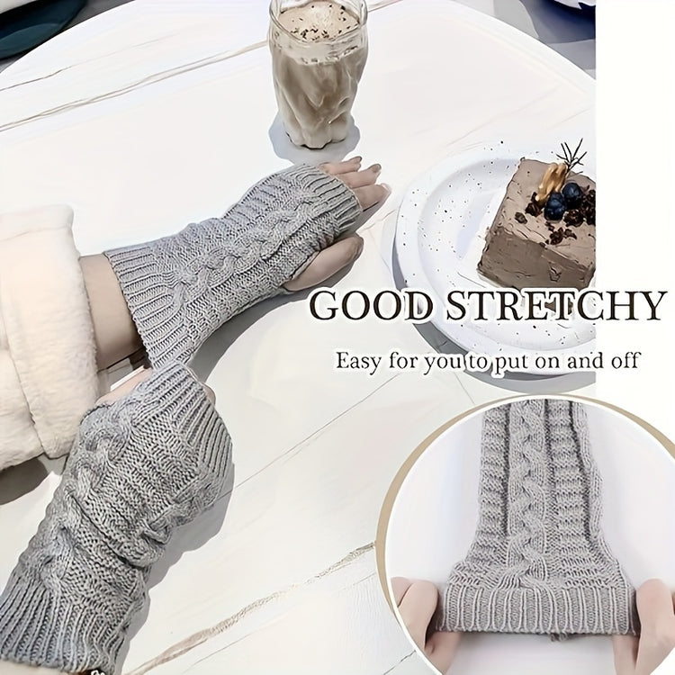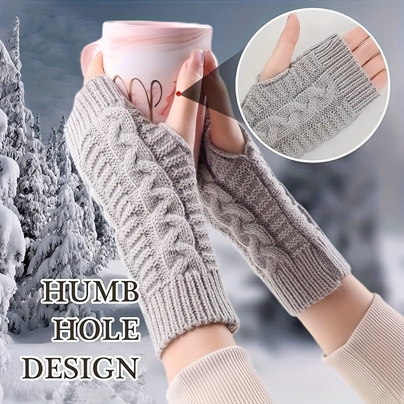 Winter Warm Women's Knitted Fingerless Gloves with Thumb Hole