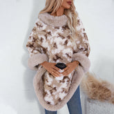 Elegant women's pullover in contrasting color with leopard print, knitted raincoat