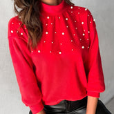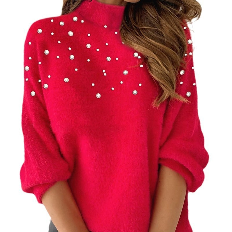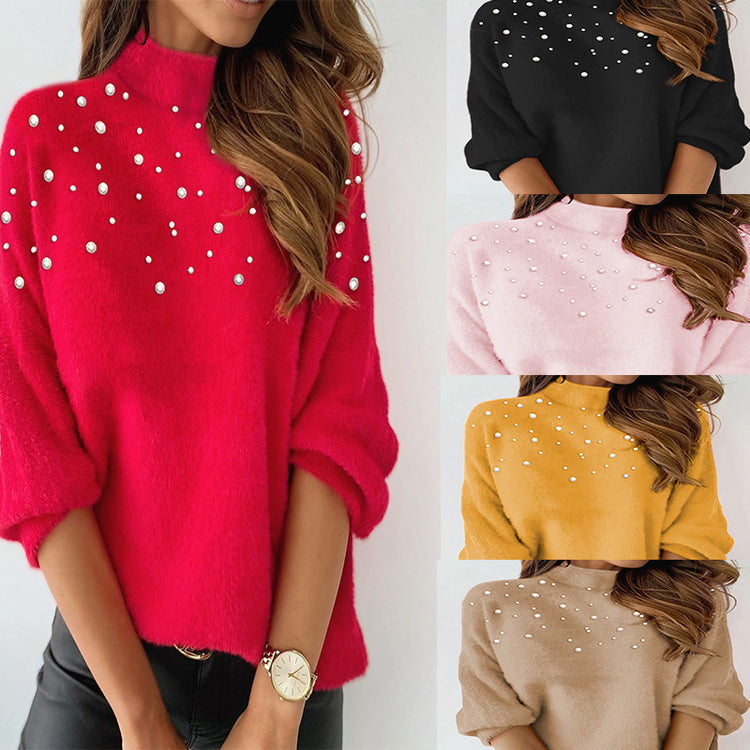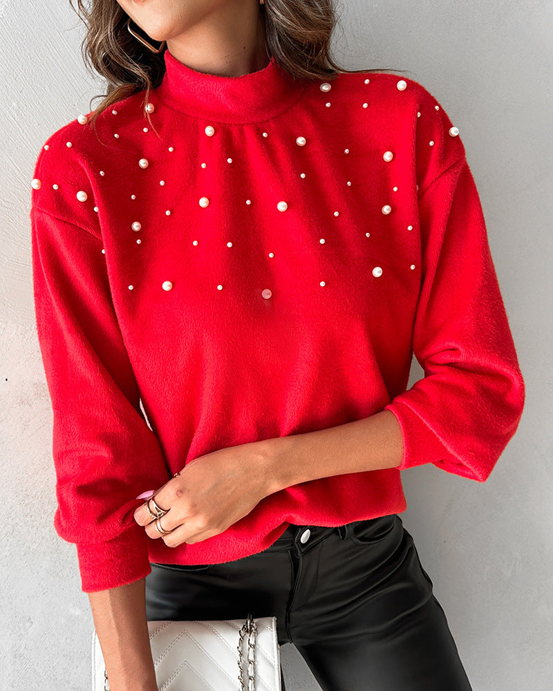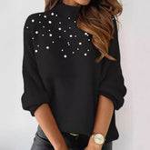 Decrease quantity for European And American Women's Clothing Beaded Turtleneck Long-sleeved Top