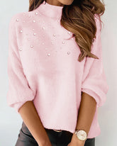 Increase quantity for European And American Women's Clothing Beaded Turtleneck Long-sleeved Top