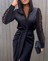 Fashion Lace Stitching V-neck Bag Hip Dress