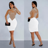 CrystalWave – Women's Mesh Bodycon Dress with Sparkling Detail"