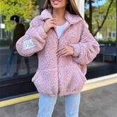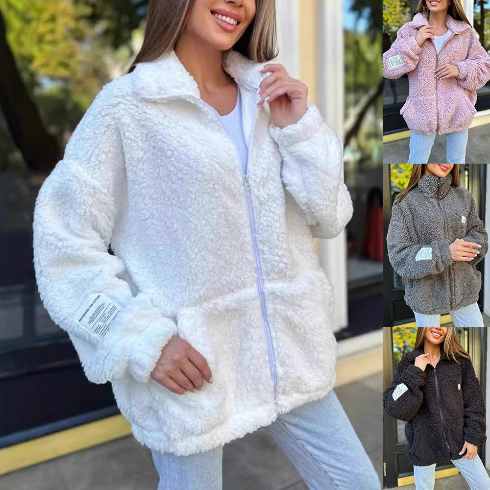 Winter Zipper Jacket Fashion Lapel Plush Cardigan Coat With Pockets Women's Clothing
