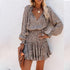 Women s Floral Print Puff Sleeve Midi Dress with Waist Tie and Patchwork Detail
