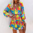 Women s Floral Print Puff Sleeve Midi Dress with Waist Tie and Patchwork Detail