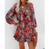 Women s Floral Print Puff Sleeve Midi Dress with Waist Tie and Patchwork Detail