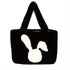 A cute, large, plush, bunny-shaped travel bag for women with ears and a fluffy tail