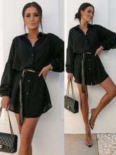 Women's Long Sleeve Button Down Shirt Dress with Belt Mini Tunic S to 2XL