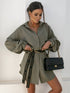 Women's Long Sleeve Button Down Shirt Dress with Belt Mini Tunic S to 2XL