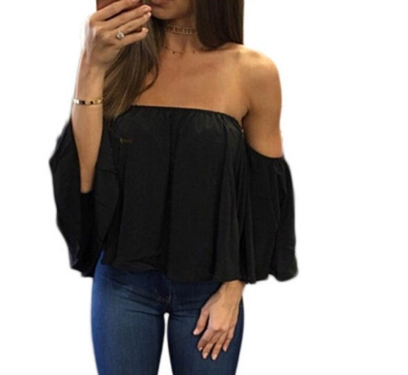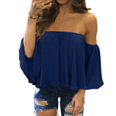 Women's Off the Shoulder Ruffle Blouse Long Sleeve Pleated Summer Top S to 5XL