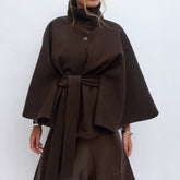 Elevate Your Winter Style: Sleek High-Neck Coat with Flowy Batwing Sleeves — Where Comfort Meets Chic